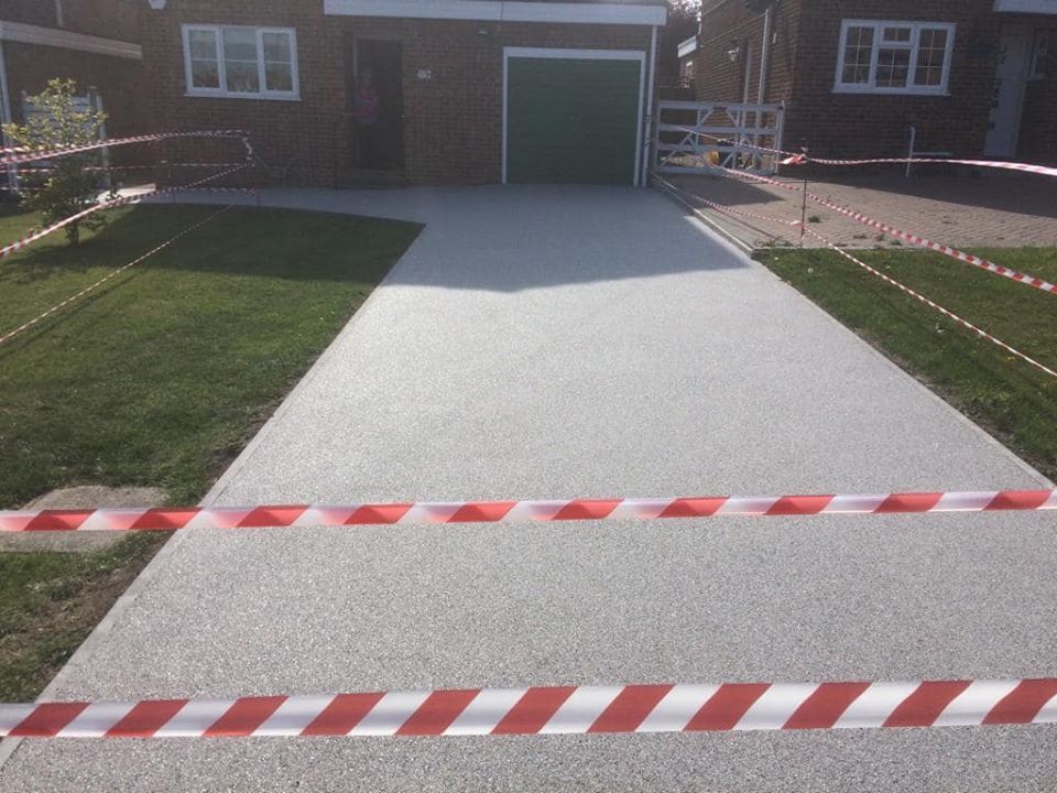 Resin Bound stone/gravel is a mix of small aggregate and clear UV stable resin and then applied to the surface. It can be laid over existing surface – tarmac or concrete. It's suitable for driveways, paths, car parks, pedestrian areas, footpaths, patios, flat roofs, and tree pits etc.